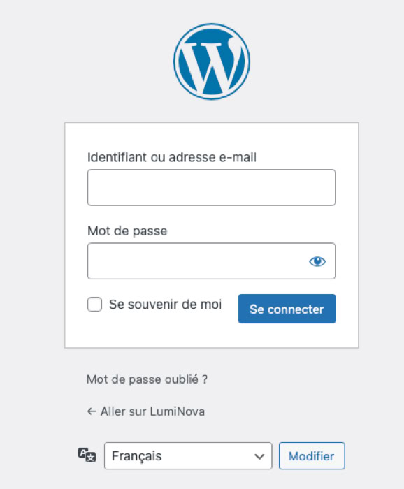 Pour accéder à l'administration WordPress, il suffit d'ajouter /wp-admin